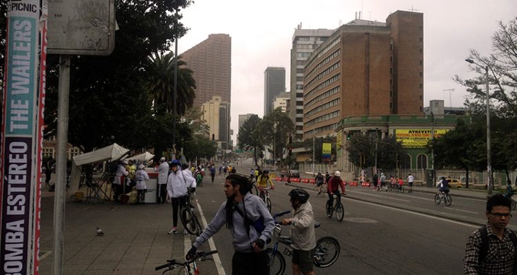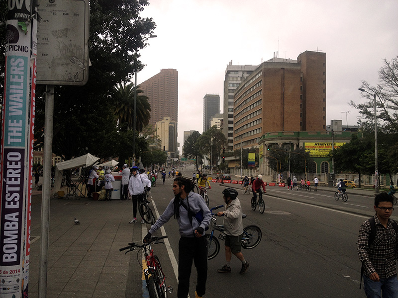 Bogotá: Ciclovia cyclists and food vendors along Carrera 7. Photo by Author. John Cruz January 31, 2014